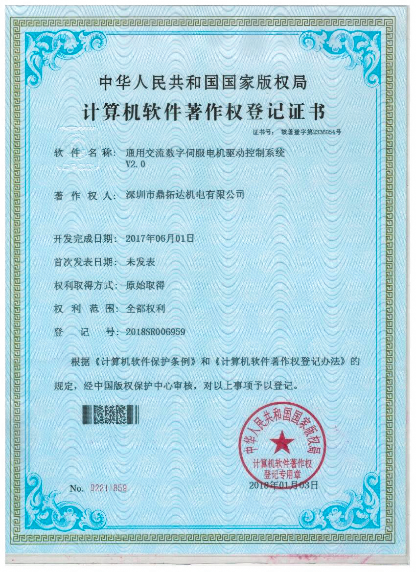 首頁->產品認證->通用交流數字伺服電機驅動控制